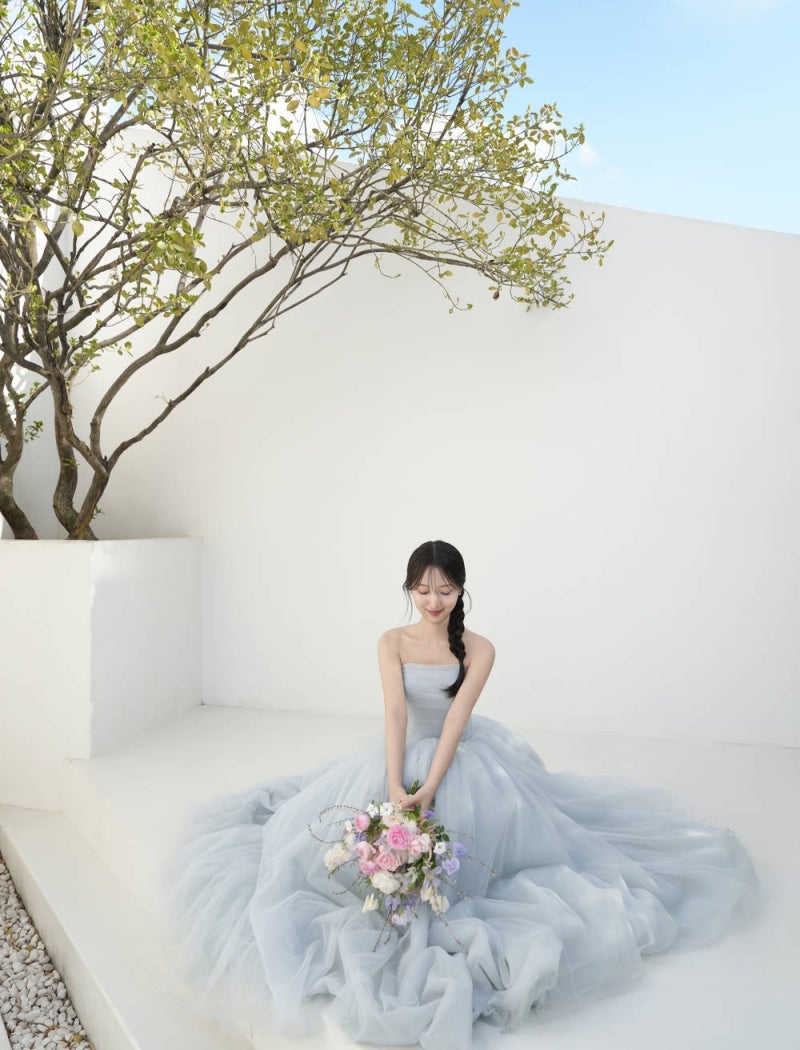 어울리는 유색 드레스로 포인트를 주었어요.